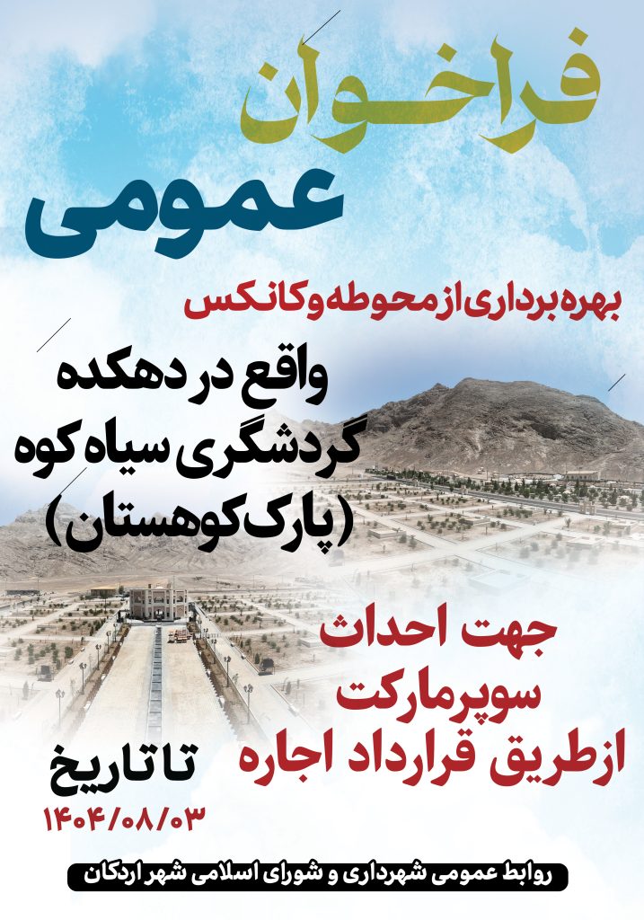 #فراخوان_عمومی ❌شهرداری اردکان یزد در نظر دارد بهره برداری از محوطه ای از دهکده گردشگری…