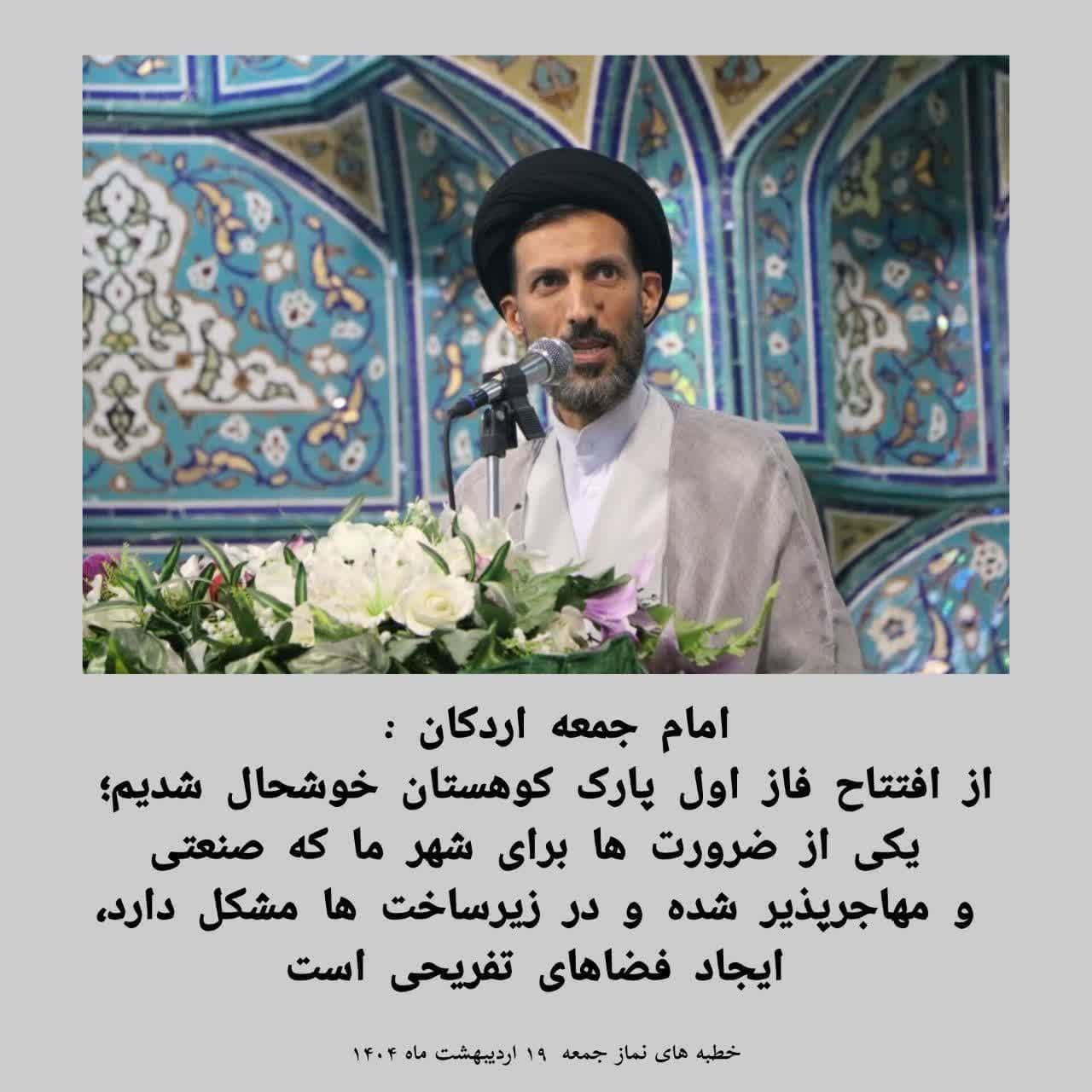 🔹امام جمعه اردکان : ✅ از افتتاح فاز اول پارک کوهستان خوشحال شدیم؛ یکی از ضرورت ها برای شهر ما که صنعتی و مهاجرپذیر شده