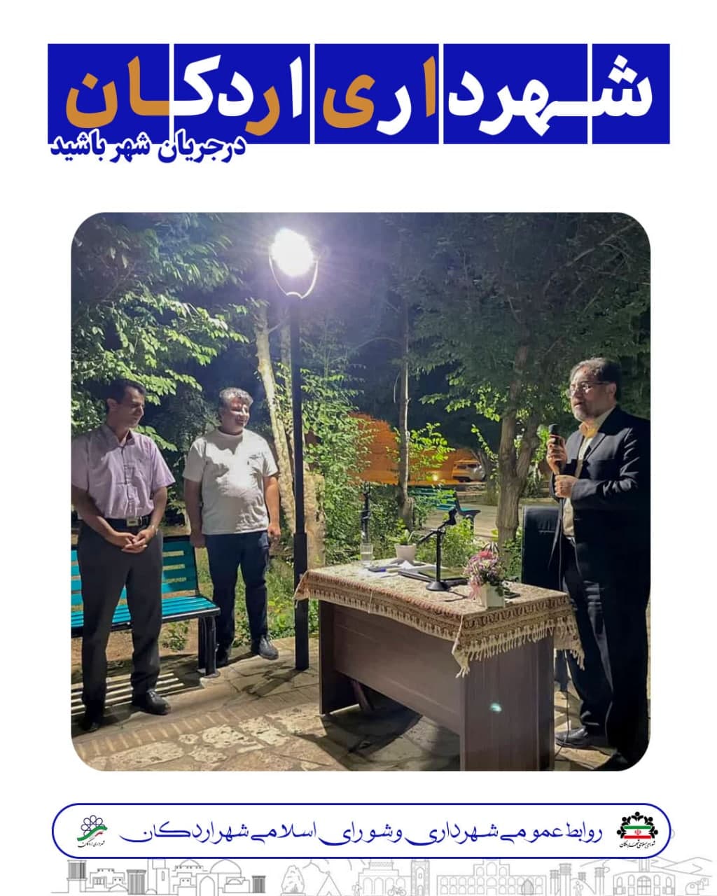 #به_روایت_تصویر سخنرانی دکتر مصطفی پوردهقان نماینده محترم، و جناب آقای جواد شاکر رئیس شورای اسلامی شهر اردکان در خصوص پارک بزرگ کوهستان 💠روابطعمومی شهرداری و