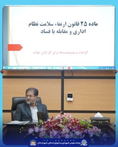 🔺در این نشست واحدهای حراست و بازرسی به تشریح موارد این قانون پرداخته و الزامات آن را برای کلیه واحدها و سازمان های شهرداری تبیین نمودند، همچنین در خصوص بهینه سازی عملکرد سامانه ۱۳۷ و نحوه تعامل و ارتباط این سامانه با سازمان بازرسی بحث و تبادل نظر شد.
