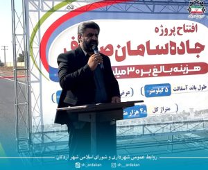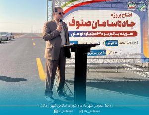 🔶 صبح امروز جاده شهرک سامان صنوف از بلوار غدیر به سمت شهرک به همت شهرداری و شورای اسلامی شهر و در پی درخواستهای مردمی با حضور نماینده مردم اردکان ، فرماندار ویژه شهرستان، شهردار، رئیس و اعضای شورای اسلامی شهر و جمعی از اصناف افتتاح شد. این پروژه عمرانی با متراژ ۴۰ هزار مترمربع و با اعتباری بالغ بر ۳۰ میلیارد تومان به بهرهبرداری رسید.