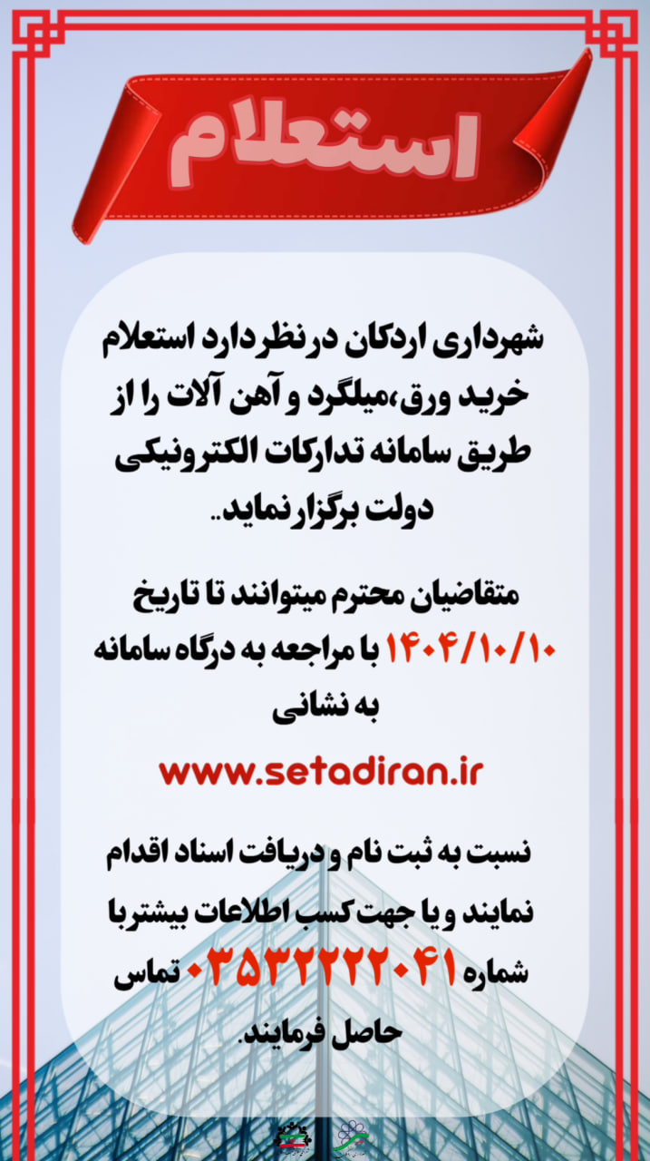 #استعلام_بهاء شهرداری اردکان یزد در نظر دارد استعلام خرید ورق، میلگرد و آهن آلات مورد نیاز به شرح جدول ذیل را از طریق سامانه تدارکات
